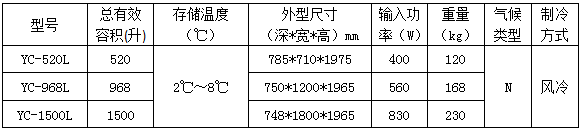 YC-968L 2~8℃冷藏箱特点: